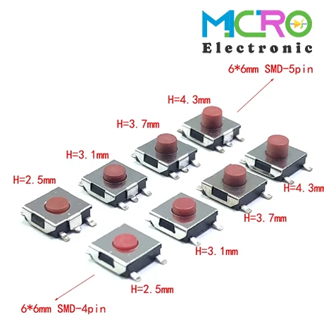 تک سوئیچ مربعی 6x6x3.1 4PIN پکیج SMD کد7