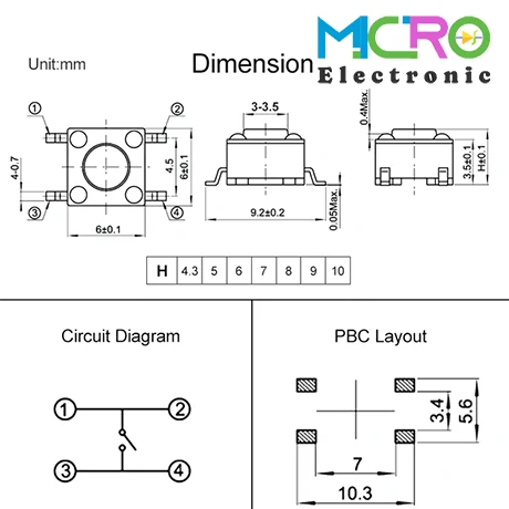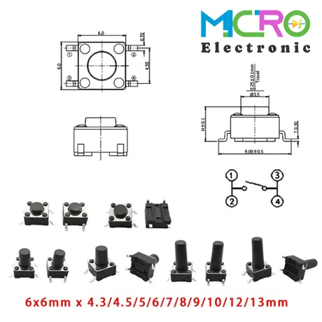 تک سوئیچ 6x6x5.5 4PIN پکیج SMD