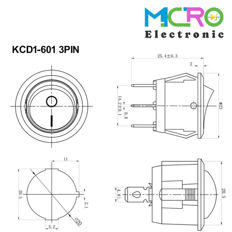 کلید راکر گرد دوحالته KCD1-601 3PIN