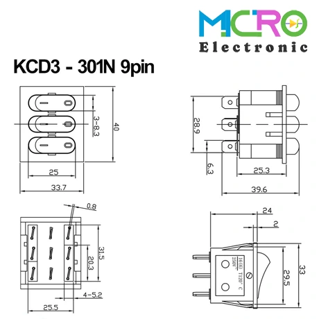 کلید راکر باریک چراغدار سه پل KCD3-301N