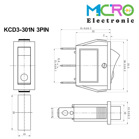 کلید راکر باریک یکطرف چراغدار KCD3-301N