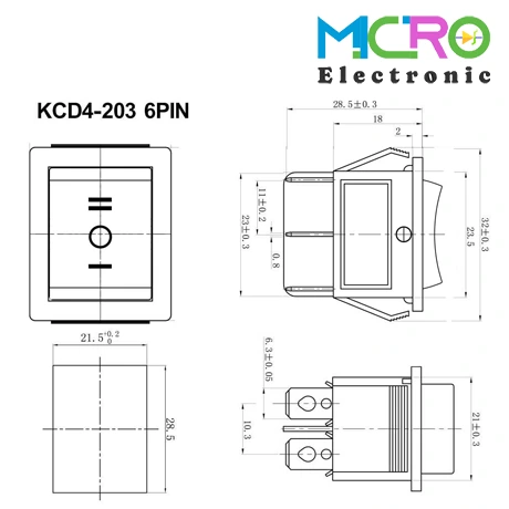 کلید راکر بزرگ سه حالته KCD4-203 6PIN