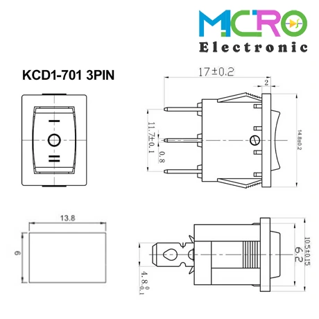 کلید راکر سه حالته کوچک KCD1-701 3PIN