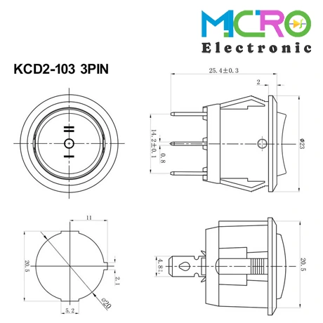 کلید راکر گرد سه حالته KCD2-103 3PIN